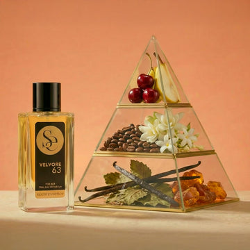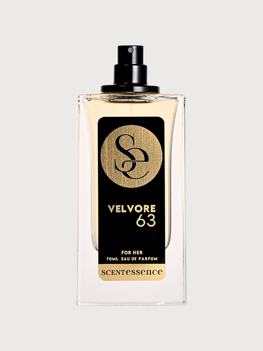 عطر VELVORE 63 عطرٌ حسيٌّ آسر، يمزج بين حلاوةٍ غنيةٍ وعمقٍ آسر. جريءٌ وناعمٌ في آنٍ واحد، يمنحكِ إحساساً بالفخامة والثقة والأنوثة التي لا تُقاوم.