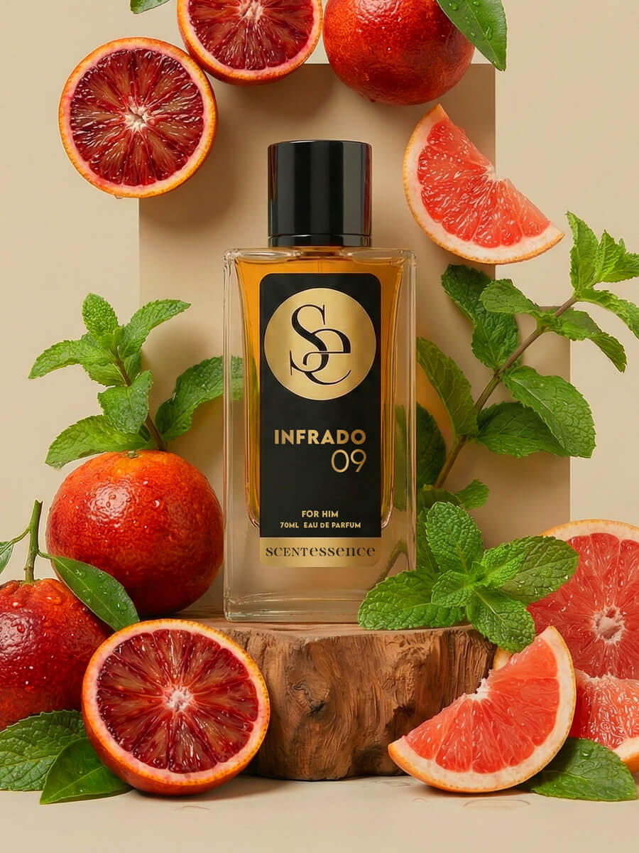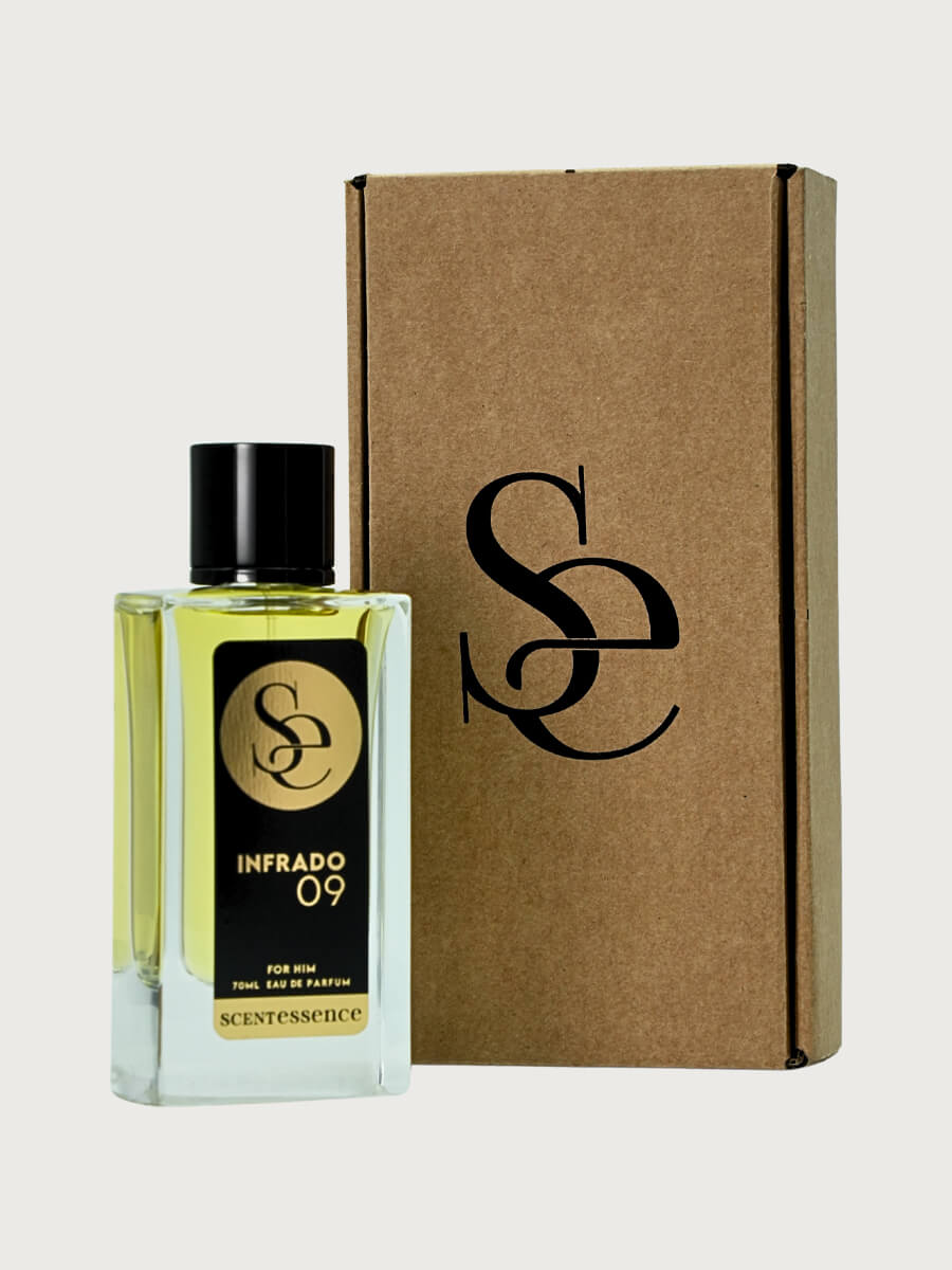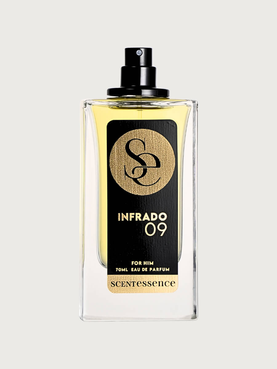 INFRADO 09 is inspired by the rush of success confident, flashy, and impossible to ignore. It combines fresh citrus brightness with warm spice and a rich, sensual base, creating a fragrance that feels like a victory lap.